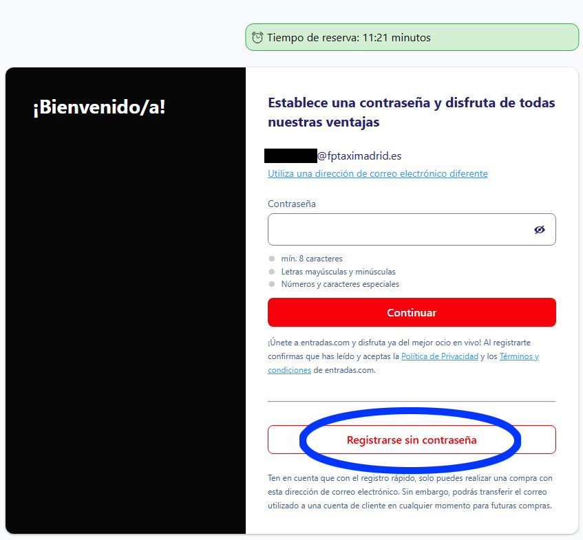 A continuación se abrirá una nueva centana donde anotar tus datos personales. Extrema la atención para escribir correctamente tu correo electrónico ya que a continuación en él vas a recibir tus entradas.