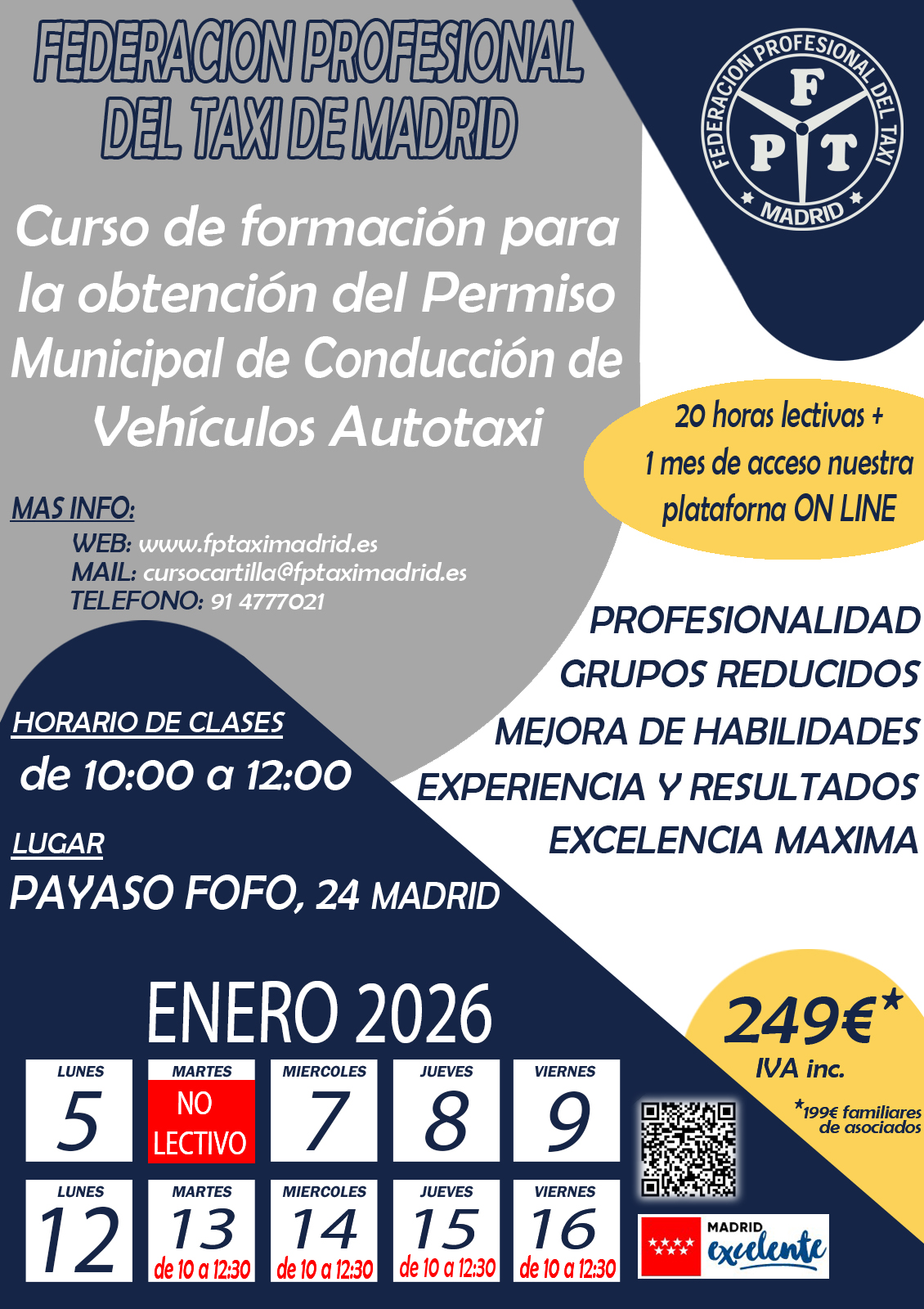 Federación Profesional del Taxi de Madrid cuenta con el más experimentado Departamento de Formación, que se dedica de forma exclusiva a la atención y formación de los alumnos matriculados, tanto de forma presencial como on-line.