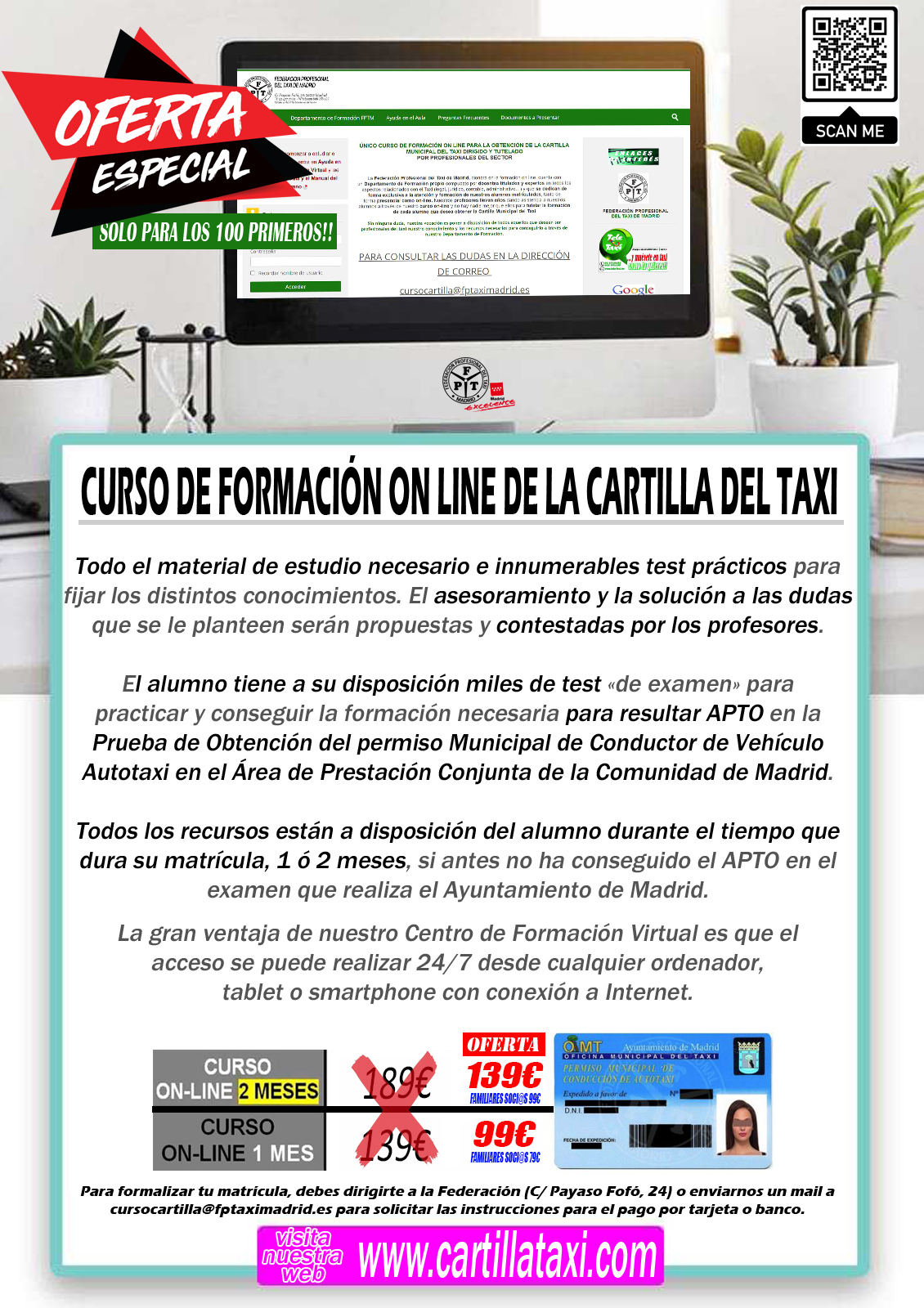 ÚNICO CURSO DE FORMACIÓN ON LINE DE LA CARTILLA DEL TAXI CREADO, DIRIGIDO Y TUTELADO POR PROFESIONALES DEL SECTOR