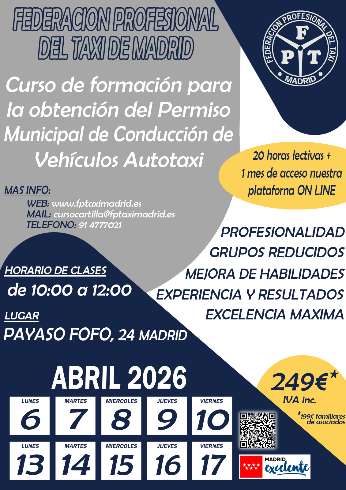 Llamando a la Federación Profesional del Taxi de Madrid en horario de Atención al Público (de lunes a viernes de 8:30 a 14:00, ininterrumpidamente) en nuestro número de Atención Telefónica 91/477.70.21