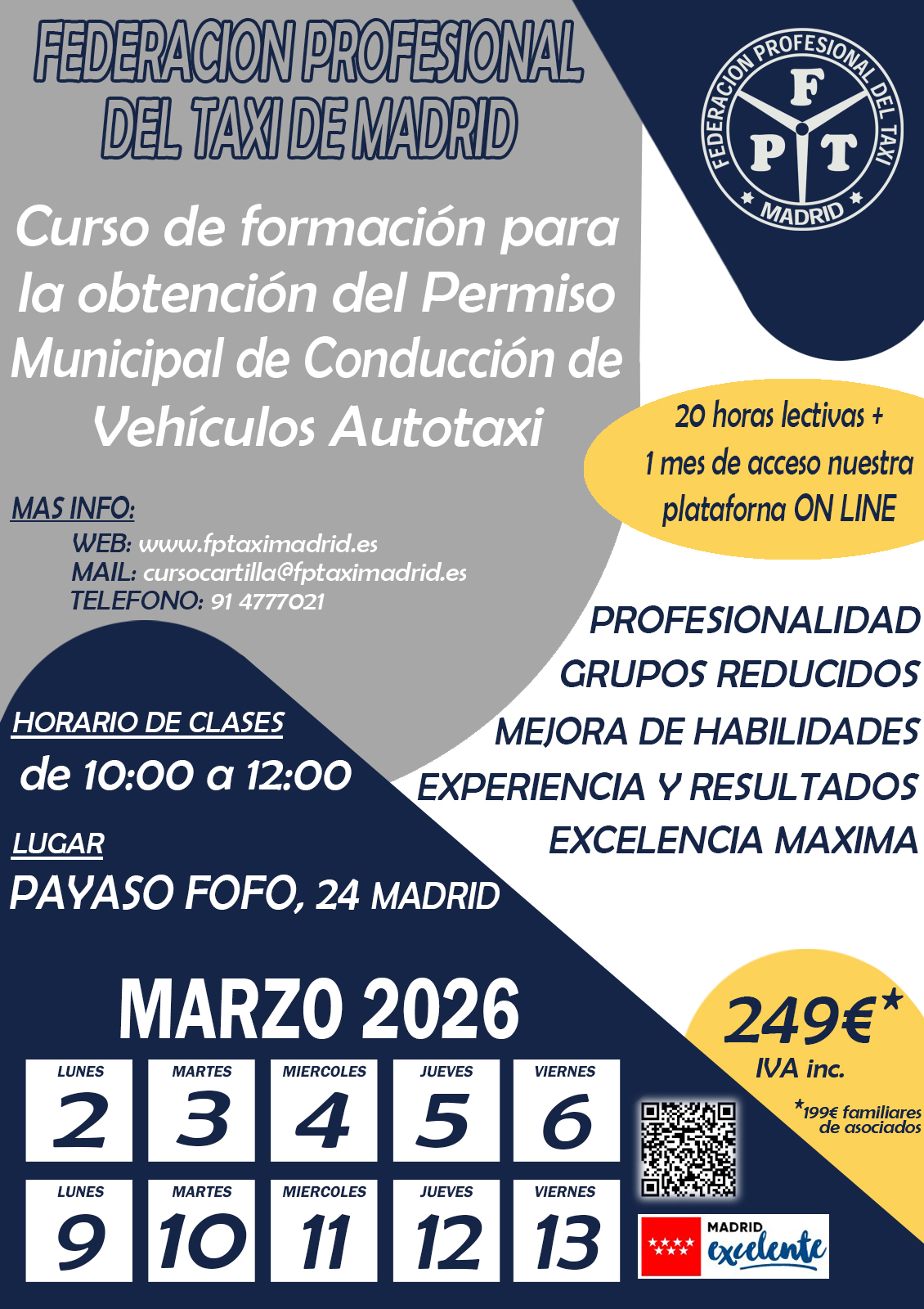 Llamando a la Federación Profesional del Taxi de Madrid en horario de Atención al Público (de lunes a viernes de 8:30 a 14:00, ininterrumpidamente) en nuestro número de Atención Telefónica 91/477.70.21