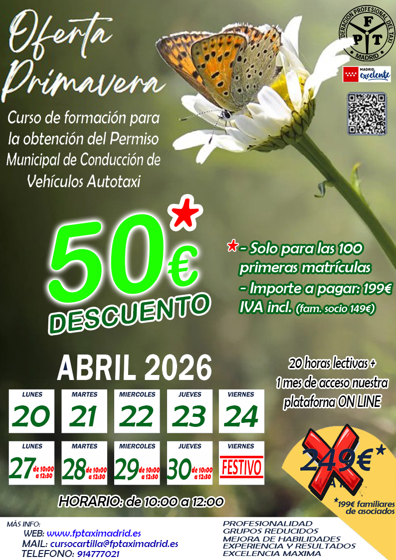 Escribiendo un e-mail a cursocartilla@fptaximadrid.es, indicando nombre y la información solicitada. A la mayor brevedad posible recibirás contestación desde nuestro Departamento de Formación.